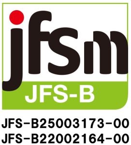 HACCPの要件を含む食品安全マネジメント規格「JFS-B規格」を取得しています。